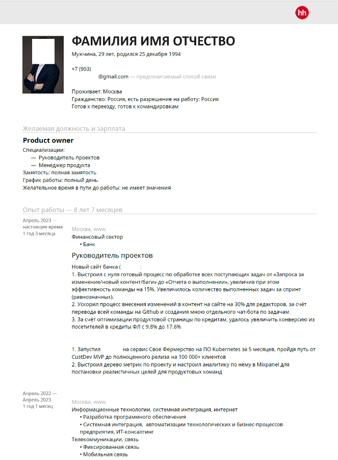 Ну вот и пришло время для разбора ваших резюме. Сегодня разбираем резюме Product_owner (Владельца продукта). Погнали!