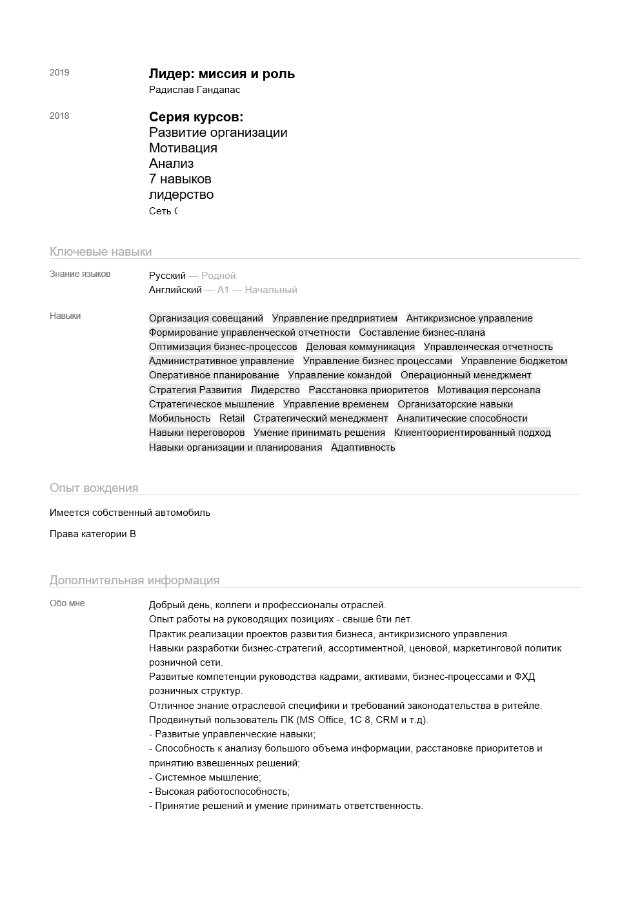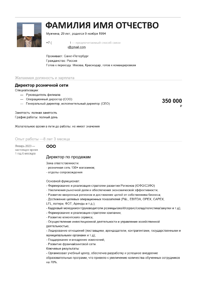 Ну вот и пришло время для разбора ваших резюме. Сегодня разбираем резюме Директора розничной сети. Погнали!