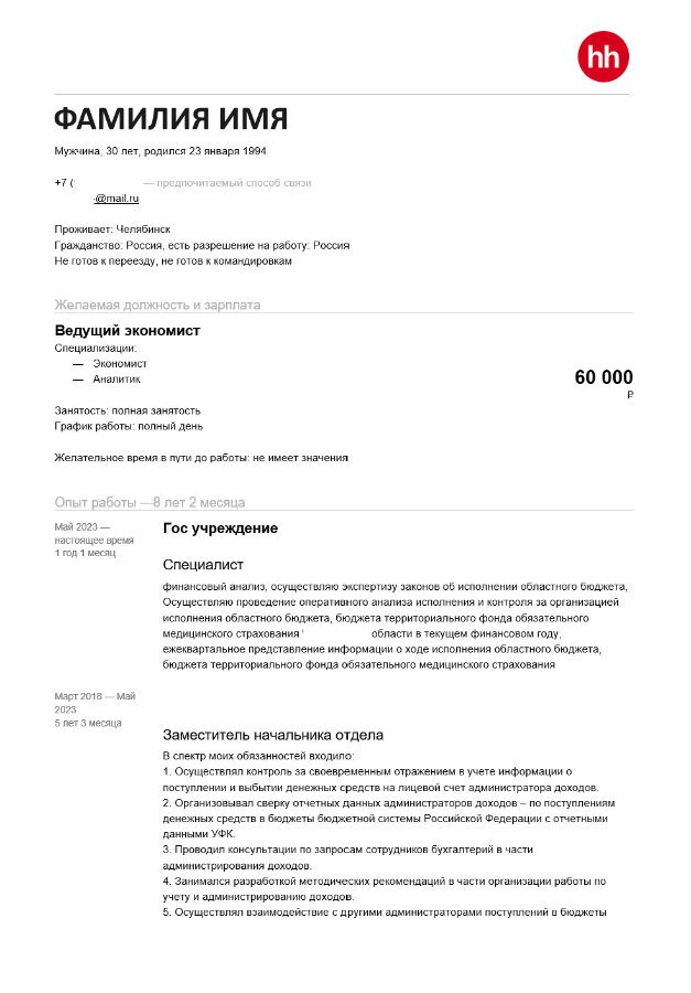 Ну вот и пришло время для разбора ваших резюме. Сегодня разбираем резюме Экономиста.