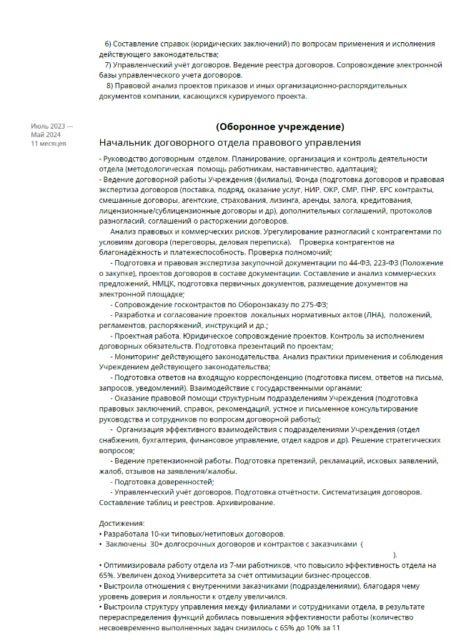 Здесь разбираем резюме Руководителя договорного отдела. Переходите в мой Телеграм канал