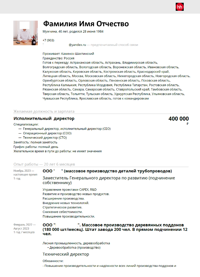 Сегодня разбираем резюме Исполнительного директора.
