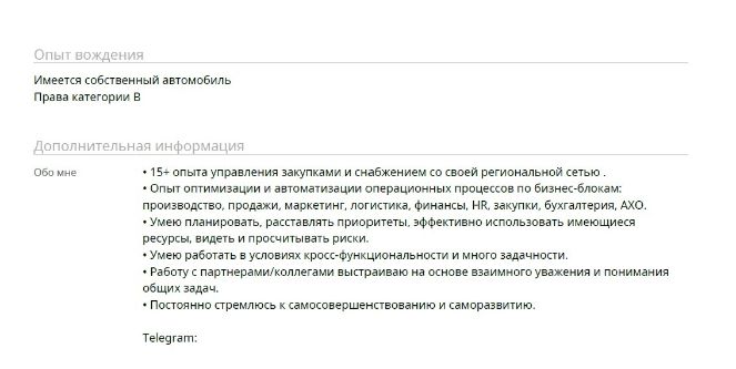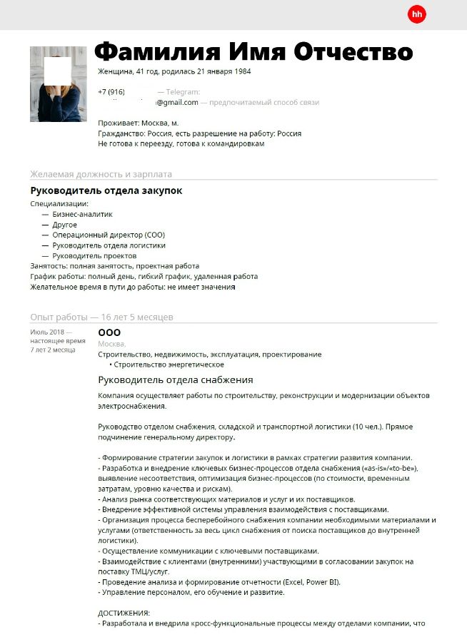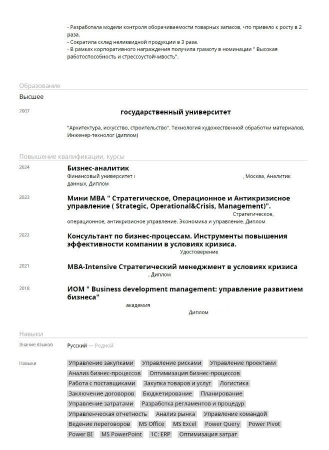 Сегодня разбираем резюме Руководителя отдела закупок.